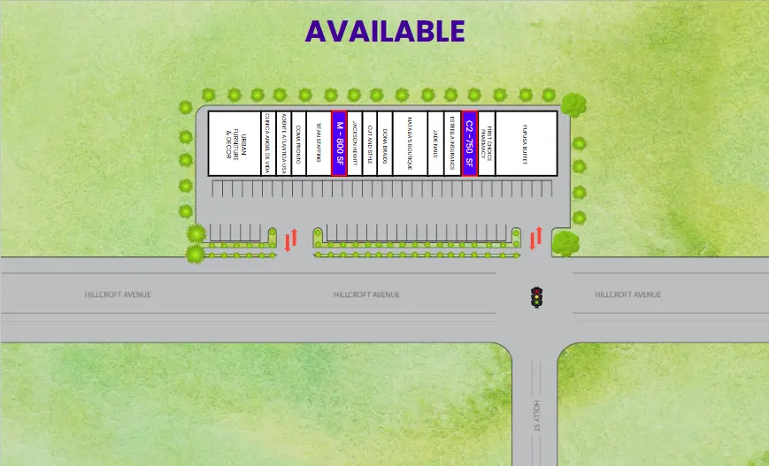 - High visibility facing Hillcroft Avenue